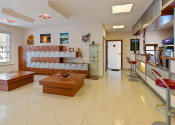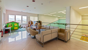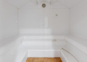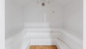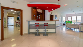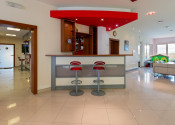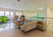 - On the first above-ground floor there is the main entrance to the building, a reception with a bar and lockers for storing personal belongings, a sitting area - eating food, an entrance hall with storage cabins, a children's corner, a dry Finnish sauna, a steam sauna, a cooling pool, a pool with a warm water and a rest area with sunbeds. Floor area 683.17 m2.