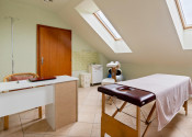 - In the attic - on the floor there are 3 housing units, a 4-room, a 3-room and a 1-room apartment, which at that time serve for sports and recreational use. There are: a gym with spinning bikes, a gym for group exercises, men's changing room with showers and toilets, women's changing room with showers and toilets, 3x massage rooms, storage and facilities for staff. From the first floor, a separate staircase leads to the rehabilitation area with swimming pools and saunas. Floor area 683.17 m2.