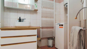 - kúpeľňa spojená s WC (sprchovací kút, umývadlo, toaleta, práčka)