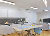 - V suteréne sa nachádzajú dve parkovacie státia (za príplatok) a pivničná kobka s výmerou 3,3 m2 zahrnutá v cene bytu.