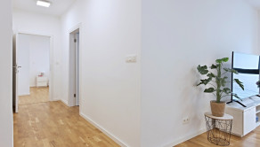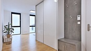 - Vstupná chodba je vybavená vstavaným šatníkom a botníkom.
