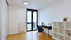- V samostatne nepriechodnej izbe s výmerou 15,4 m2 sa nachádza vstavaný šatník s posuvnými dverami a vstupom na balkón.