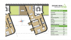 - Terasa má výmeru 22 m2 a záhrada 29 m2.