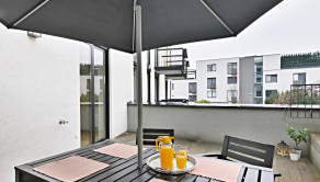 Možnosť predaja aj vybavenia bytu za doplatok 3.000 Eur (kuchynský stôl a 4 stoličky, sedačka, konferenčný stolík, skrinka pod TV, TV zn. Samsung, uložný regál, manželská posteľ, 2x nočný stolík, policovavá zostava, zrkadlo a kozmetický stolík so stoličkou, práčka a sušička, vonkajší stôl so slnečníkom, 4 kreslá).