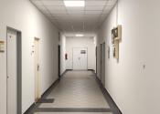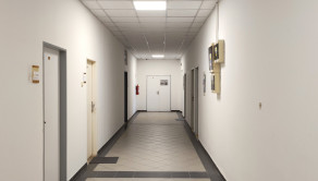 - Kancelárie majú plávajúce podlahy alebo koberce, plastové okná s interiérovými žalúziami.