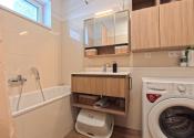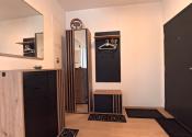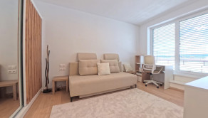 Dispozícia: Obývacia izba spojená s kuchyňou a jedálňou. Kuchynská linka vybavená spotrebičmi zn. Gorenje (varná doska, digestor, chladnička s mrazničkou, el. rúra, mikrovlnka, umývačka riadu. Spáľňa s manželskou posteľou a veľkým šatníkom. Pracovňa s rozkladacou pohovkou, pracovným kútikom a väščím šatníkom. V byte je priestranný kúpeľňa s vaňou a oddelené WC s umývadielkom.