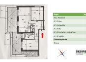 Byt s úžitkovou plochou 72,43 m² sa nachádza na najvyššom 2. poschodí, čo zaručuje tiché bývanie bez susedov nad hlavou. Dominantou bytu je zelená terasa s rozlohou 38,8 m² a príjemným posedením pod pergolou, na ktorú sa vchádza z obývacej časti. Vďaka juhozápadnej orientácii je interiér počas celého dňa svetlý a príjemne preslnený. Byt je kompletne zariadený a vybavený spotrebičmi, stačí si priniesť osobné veci.